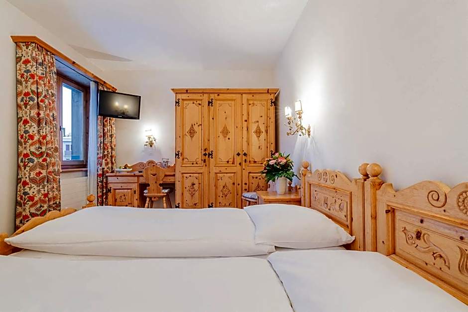 Room with a flat-screen satellite TV and a work desk. This room is fitted with furniture made of Swiss stone pine wood.